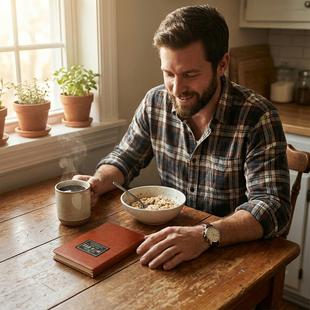 Designed for busy men, this 4×6" faux-leather book slips into a work bag, nightstand drawer, or travel case. Each one-page devotion takes under a minute, gives him a clear theme, God’s Word, and a promise to carry through the day—making it the perfect gift for husbands, dads, and sons.